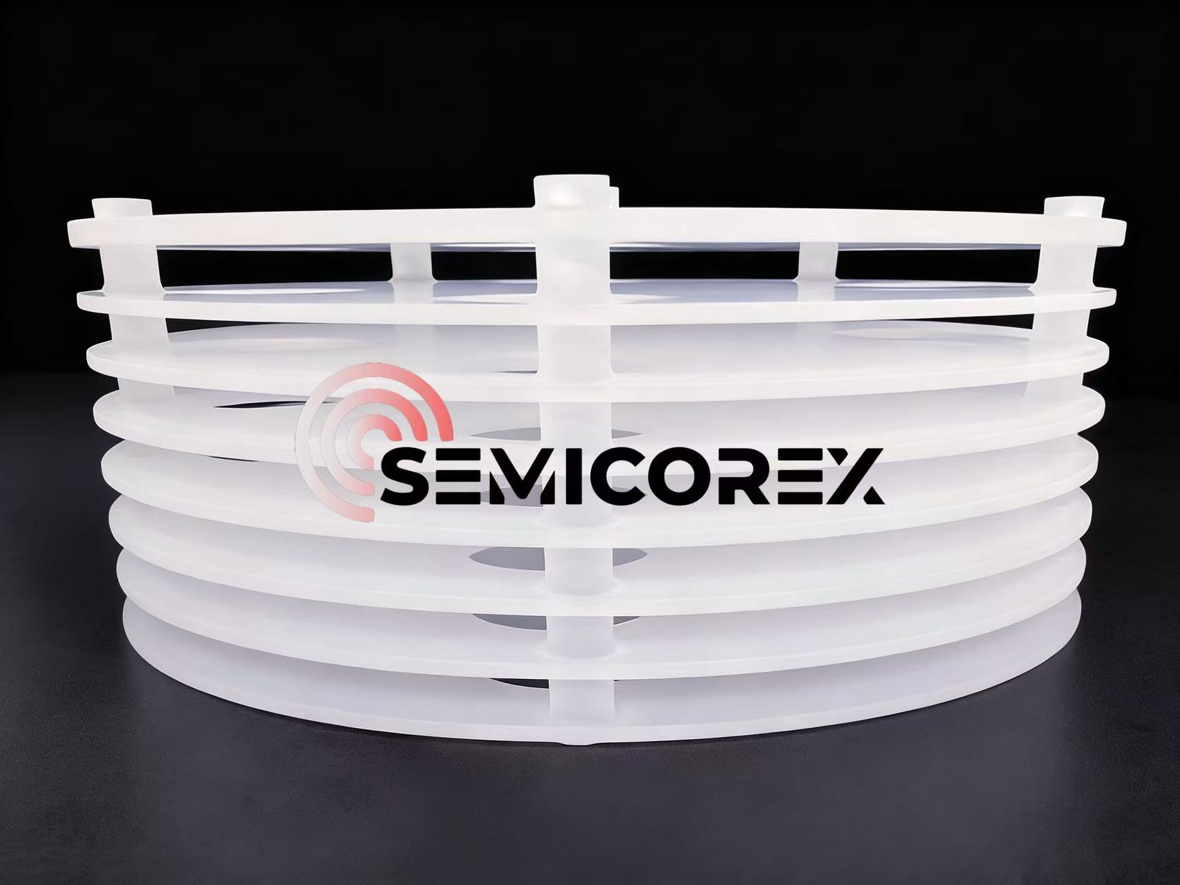 Los termos de cuarzo generalmente se colocan debajo o alrededor de botes de cuarzo en el horno de maquinaria de procesamiento de alta temperatura, como hornos de difusión y hornos de oxidación. Para garantizar una integración perfecta con una gama de componentes de cuarzo, comobarcos de cuarzo, tubos de cuarzo, crisoles de cuarzoytanques de cuarzoConsisten principalmente en componentes centrales como carcasa, base, columna de soporte y panel aislante. Gracias al diseño preciso de las columnas de soporte y los topes de posicionamiento, los termos de cuarzo aseguran firmemente los portadores de obleas de silicio para brindar un soporte confiable, evitando así el desplazamiento durante los procesos de fabricación de semiconductores a alta temperatura. Mientras tanto, su estructura de aislamiento multicapa minimiza eficazmente la pérdida de calor y mantiene una temperatura constante del horno para garantizar un espesor de película uniforme para las obleas de silicio durante todo el procesamiento. Los elementos importantes que garantizan la precisión de los procedimientos de fabricación de semiconductores y la calidad del producto son los termos de cuarzo de Semicorex.